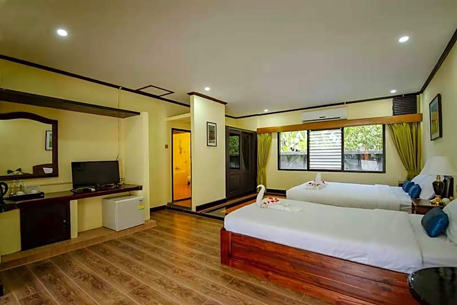 A range of rooms and suites provides flexible options, from Standard and Elite layouts to Junior Suite and a spacious Suite. Sizes span about 323 to 593 square feet, with several configurations allowing two adults plus a child, and some layouts accommodating up to four adults. The Suite features a king-size bed and sleeps two adults and one child, while other Standard variants accommodate two adults and one child; triple and larger layouts further expand capacity. All accommodations are non-smoking and many offer garden views to complement Luang Prabang’s tranquil vibe.