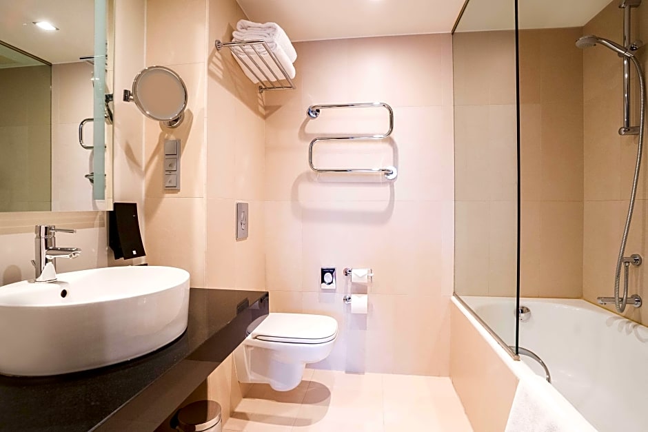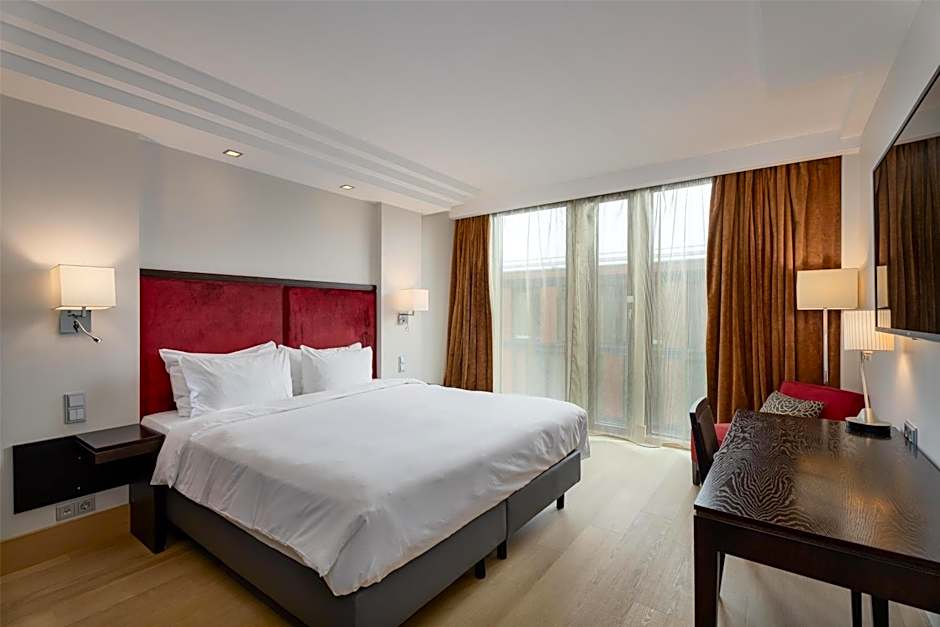 This double room features a seating area, air conditioning. In-room coffee and tea facilities. Magnifying mirror. Hairdryer. Free Wi-Fi. Nespresso coffee machine. Desk. Flat-screen TV. Bathroom with free toiletries. Complimentary access to the fitness and sauna. Children up to 12 years old can stay without extra charge if no additional bed is required.