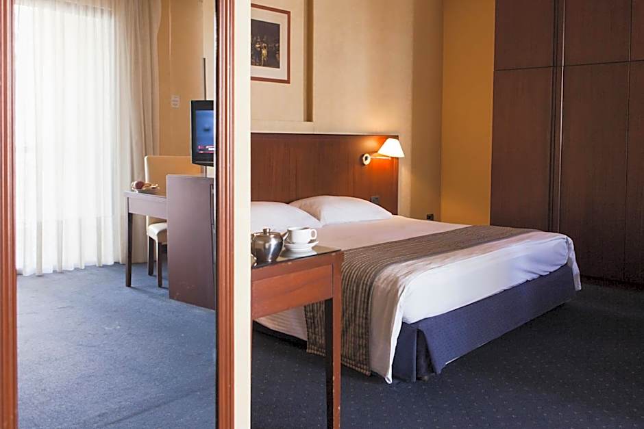 This guest room can accommodate up to 4 people. It concists of 2 bedrooms, a spacious living room and a bathroom. A bar and a useful desk will serve multiple purposes whether you're on a business trip, leisure one or with your family. This room is equipped with a bathtub and a balcony. It is air-conditioned and has a flat-screen TV with international TV channels, cozy king size bed and spacious wardrobe.