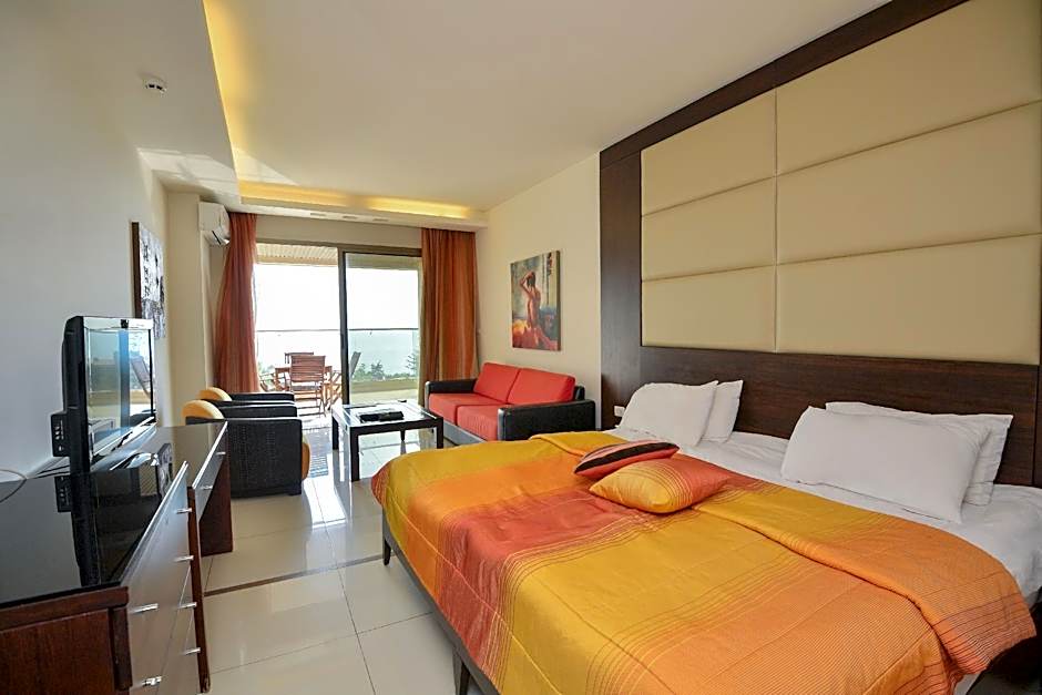 The suite features air conditioning, a mini-bar, as well as a private bathroom boasting a bath and a shower. This suite has a seating area, a tiled floor and a flat-screen TV. The unit has 1 bed.