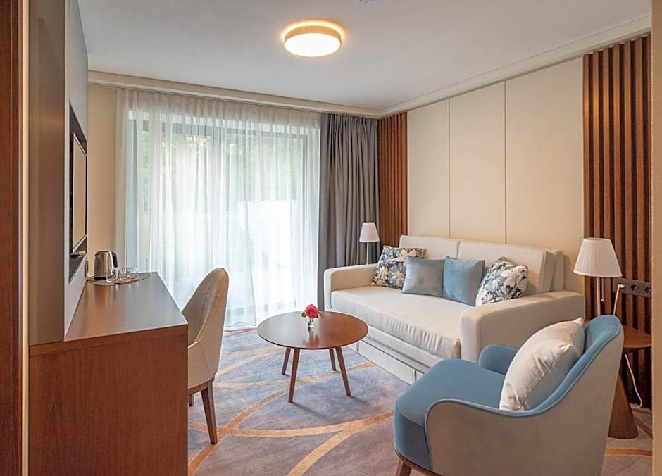 Escape to the stunning seaside at Auksinės Kopos, a charming 4-star hotel nestled just 0.5마일 from the heart of Šventoji, Lithuania. Whether you're seeking relaxation or adventure, this beachfront oasis offers it all — from refreshing outdoor and indoor pools (plus a dedicated kids' pool) to a rejuvenating spa with free access to spa and sauna facilities. Grab a deck chair on the sun deck, unwind on the terrace, or take a leisurely stroll along the nearby beach with umbrellas and loungers at your service!