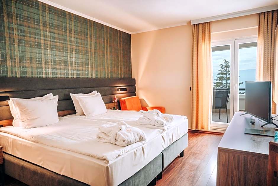 Wellness and water beckon at this Ohrid retreat. An indoor pool welcomes adults for a serene, year-round dip, while a wellness lineup—Turkish/Steam Bath, steam room, spa, and sauna—fuels downtime and relaxation. A free fitness center keeps the pace, and the beachfront setting provides a breezy backdrop for mornings by the lake.