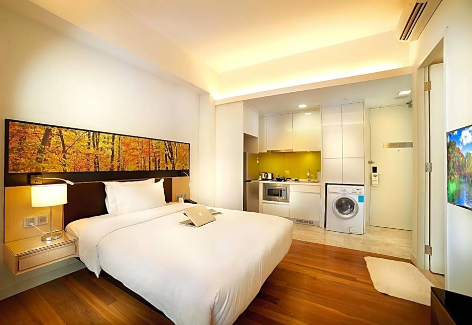 The Signature Hotel offers Queen Studios (269 sqft) and King Studios (344 sqft) with 1 Queen and 1 King size bed respectively. The Queen Studio accommodates 2 adults while the King Studio accommodates 3 adults with an additional sofa bed. Smoking is not allowed in both room types.