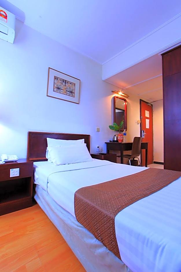 The Telang Usan Hotel Kuching offers Standard Double Rooms and Standard Twin Rooms. Both room types have a size of 248 sqft and do not allow smoking. The Standard Double Room accommodates 2 adults and 2 children with 1 Queen size bed, while the Standard Twin Room accommodates the same number of guests with 2 Twin beds.