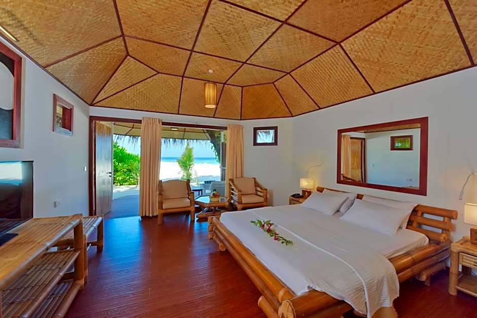 Spa/Wellness packages are available, and snorkeling or water sports facilities on site carry extra charges. Shuttle services and airport shuttle incur additional fees as well. Addressing shoreline access, there is private entrance and beachfront access with a terrace and patio, all situated in North Male' Atoll, Maldives.