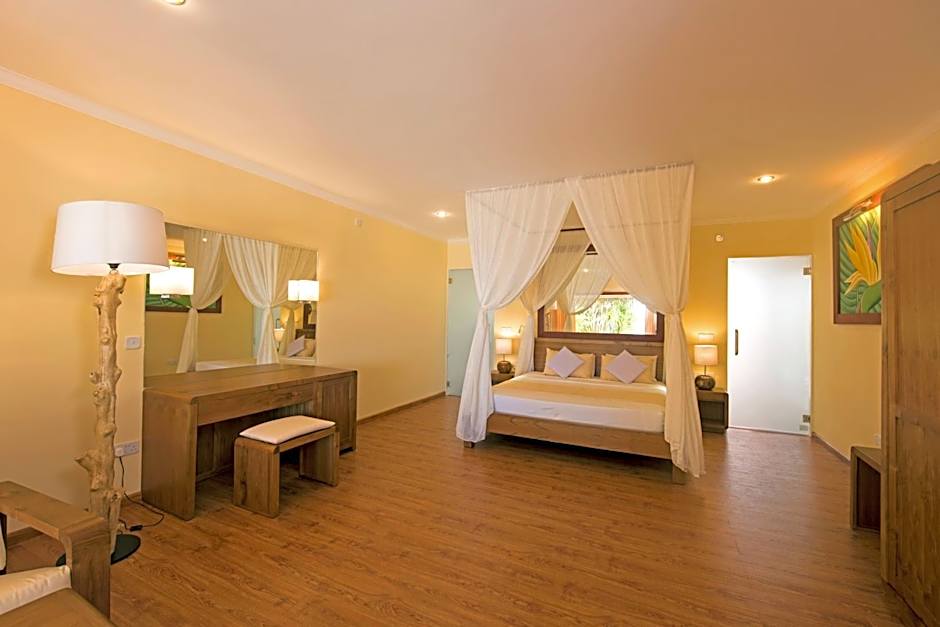 Boasting a private entrance, this spacious bungalow also comes with 1 bedroom, a seating area and 1 bathroom with a walk-in shower and a bath. The air-conditioned bungalow features a TV with cable channels, soundproof walls, a mini-bar, a tea and coffee maker as well as sea views. The unit has 2 beds.
