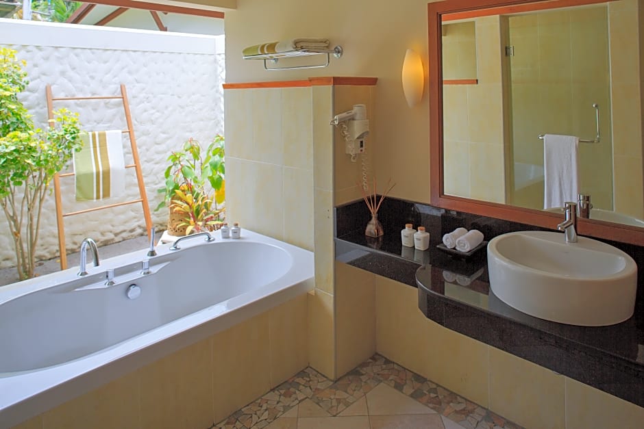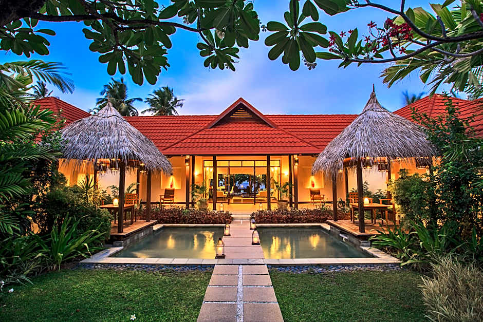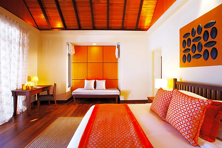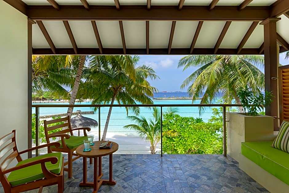 Spacious villas feature a large bedroom, sitting room and veranda that lead onto the white sands. A private courtyard features a swimming pool/spa bath, set in a peaceful garden with a thatched roof daybed pavilion for relaxation and sun loungers. Pool villas enjoy the option of having premium breakfast in Thila and afternoon cocktails in Kandu Bar. It can accommodate 3 additional people.