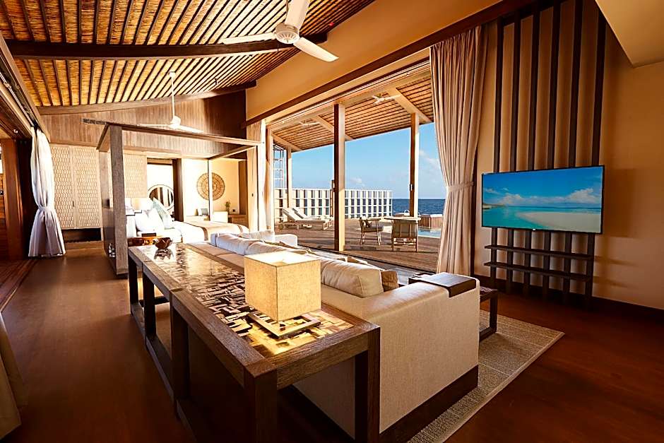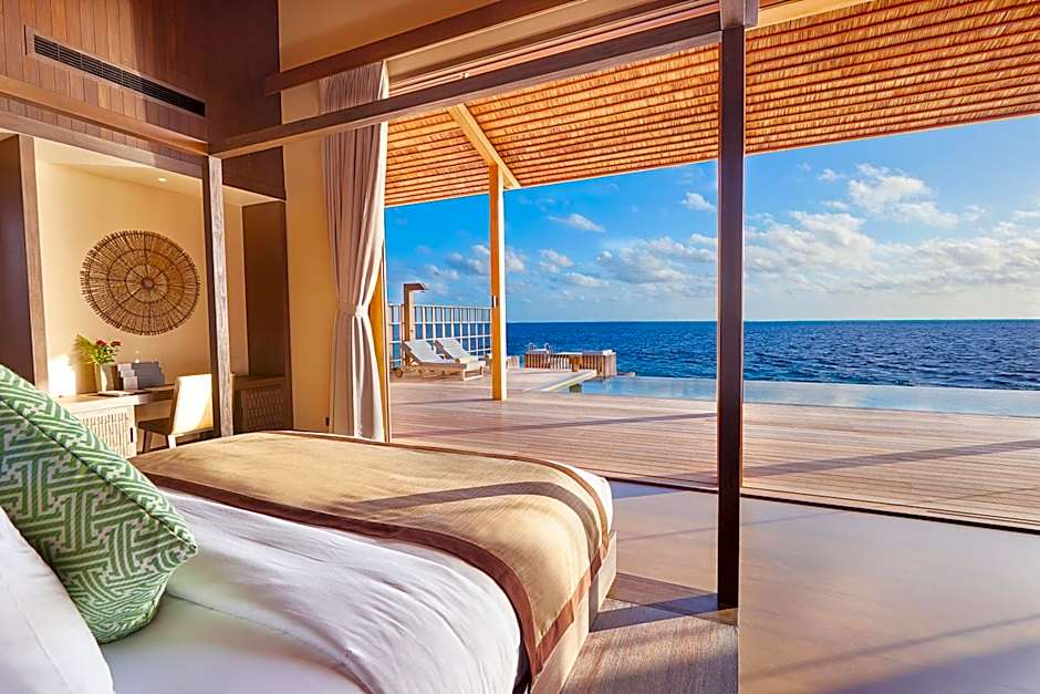 For those looking to relax in style, the outdoor heated pool provides the perfect spot to unwind under the sun or stars. Its shallow end makes it ideal for a leisurely dip, while the panoramic views add a touch of magic to your swim. Grab a refreshing cocktail from the poolside bar and float your worries away while soaking in the breathtaking scenery of the Maldives—true bliss at every turn.