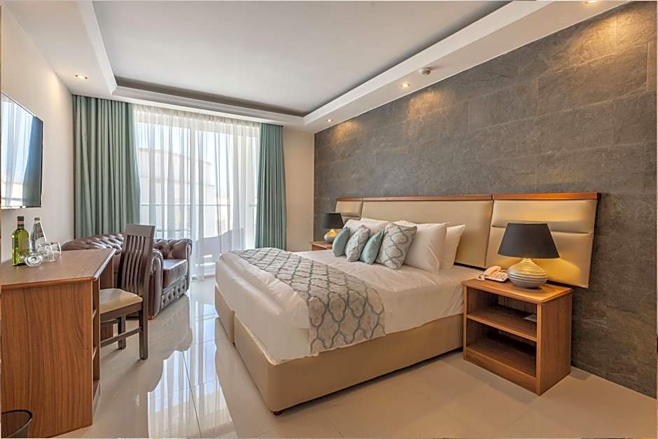 The hotel offers a Quadruple Room that spans 258 sqft and accommodates 4 adults and 2 children. It includes 2 King size beds and is a non-smoking room. The Double or Twin Room, with a room size of 140 sqft, can accommodate 2 adults and features 1 King size bed without smoking allowed. The Deluxe Double or Twin Room, covering 226 sqft, is also non-smoking and accommodates 2 adults with 1 King size bed.
