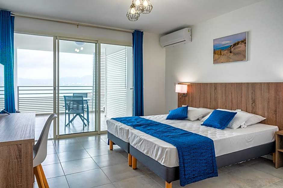 Experience ultimate luxury in our spacious Superior Studio, boasting stunning ocean views from your private balcony. This studio comes equipped with a fully-equipped kitchenette, modern amenities, and a comfortable king-size bed for a restful stay. Perfect for a tranquil retreat for two, unwind and enjoy the beautiful terrace and easy access to the beach.