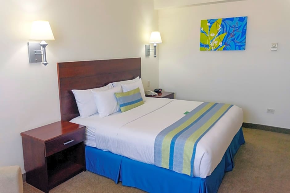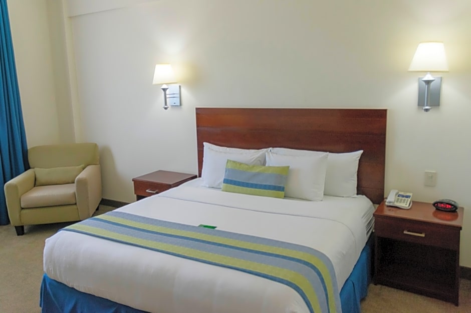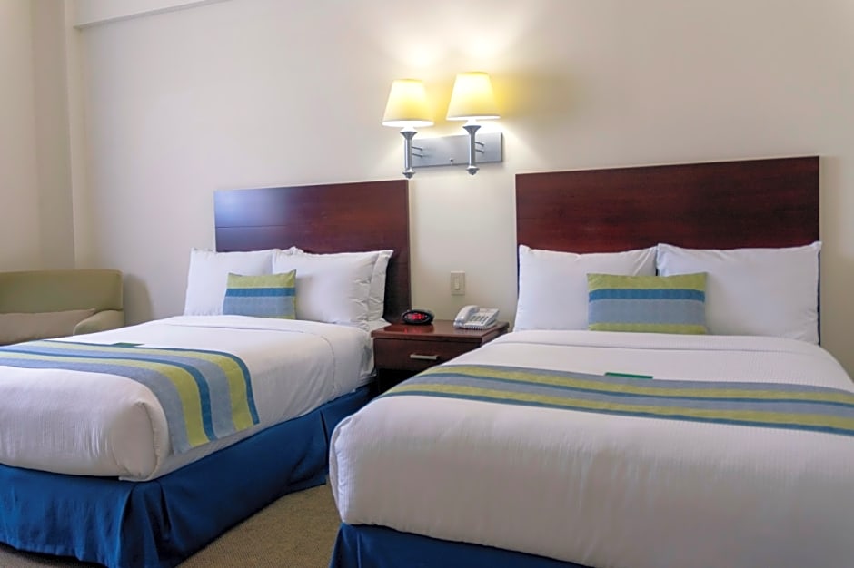 At Hotel Aeropuerto Los Cabos, there are King Rooms and Double Rooms available. The King Rooms accommodate 2 adults and have a King size bed, while the Double Rooms accommodate 4 adults and have two Double beds. All rooms are non-smoking and have a size of 194 sqft.