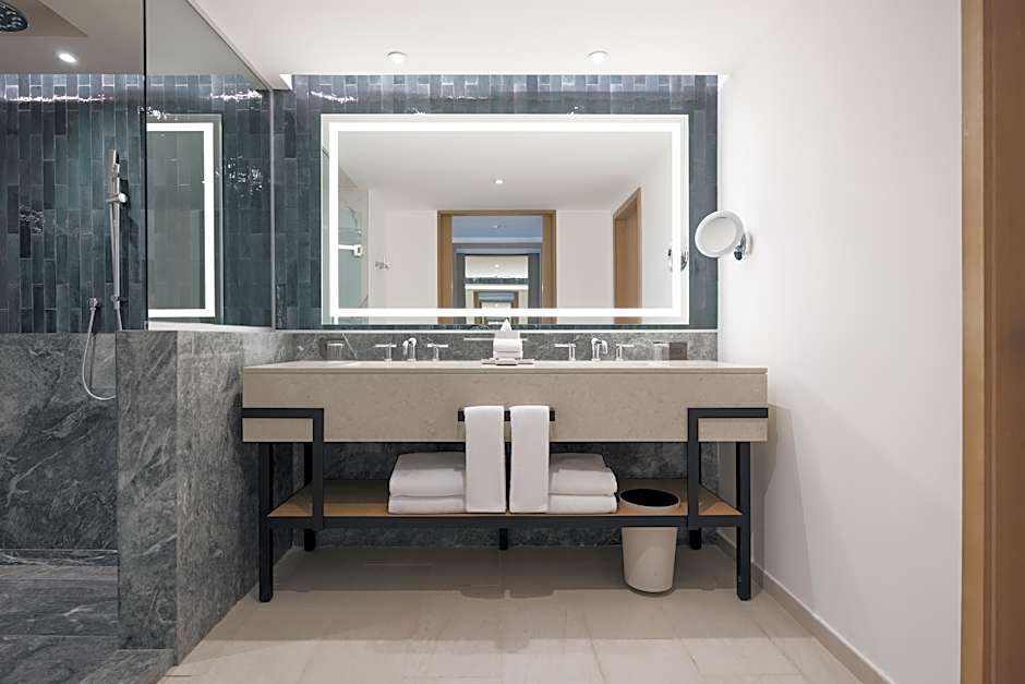 Club One Bedroom Master Suite is 1130 square feet and includes a king-size bed 150-183 width plus balcony, terrace, cable tv, hairdryer, tea and coffee making facilities , ironing set, safe, and bathrobes.