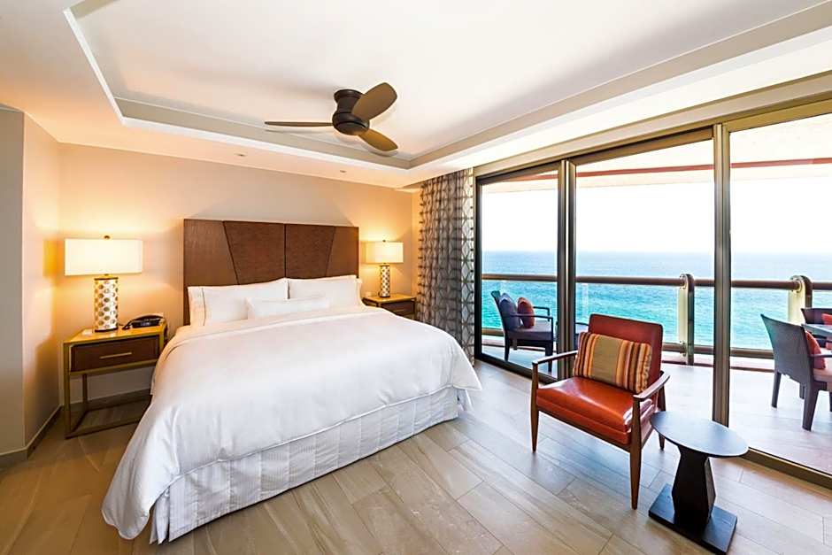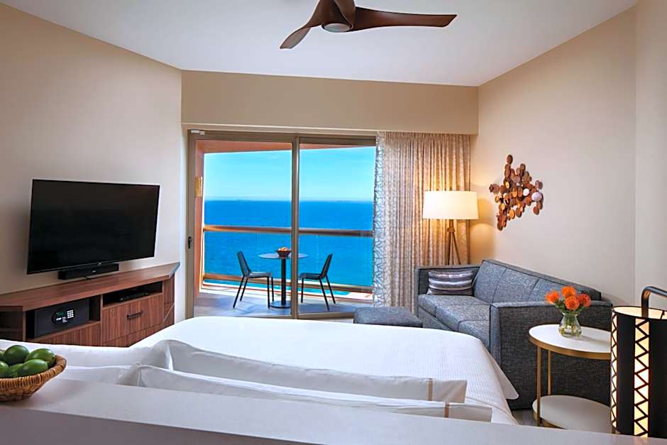 The Westin Los Cabos Resort Villas offers King Studios with a balcony and ocean view. These studios are non-smoking and can accommodate up to 4 adults and 3 children. The room size is 506 sqft and features a King size bed and a sofa bed.