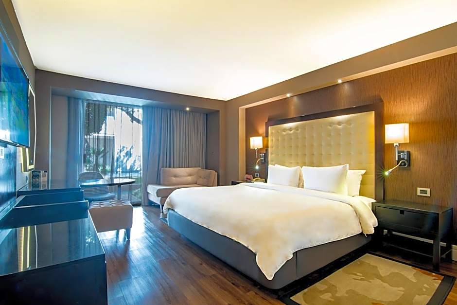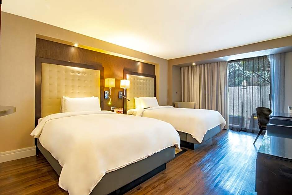 Hotel Lucerna Tijuana offers a variety of room types including Lucerna Select King, Executive King, Deluxe King, Deluxe Double, and Executive Double rooms. These rooms are all non-smoking and have a size of 377 sqft. They can accommodate either 2 adults and 1 child or 2 adults and 2 children. The beds available range from 1 King size bed to 2 Double beds.