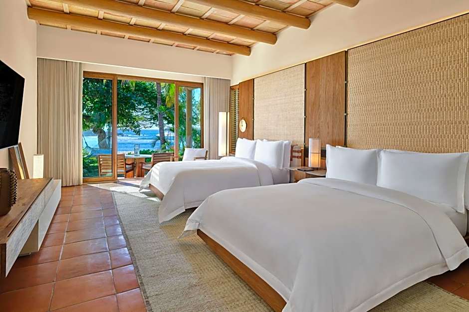 At The St. Regis Punta Mita Resort, guests can choose from rooms such as the Suite Ocean View, which is a 1-bedroom larger suite with a king-size bed, accommodating 2 adults and 2 children. Smoking is not allowed in this room. Another option is the Luxury Villa, a 1-bedroom villa with a king-size bed, accommodating 3 adults and 2 children. This beachfront villa also features a whirlpool and does not allow smoking.