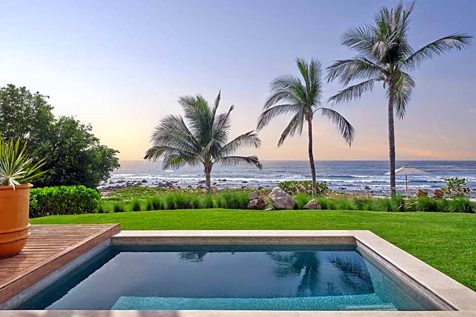 Guests at The St. Regis Punta Mita Resort have an array of leisure amenities to enjoy during their stay. They can spend their time at the hotel by lounging on the beautiful beachfront or relaxing at the private beach area. There are also multiple outdoor swimming pools, including a kids' pool and an adults-only pool.