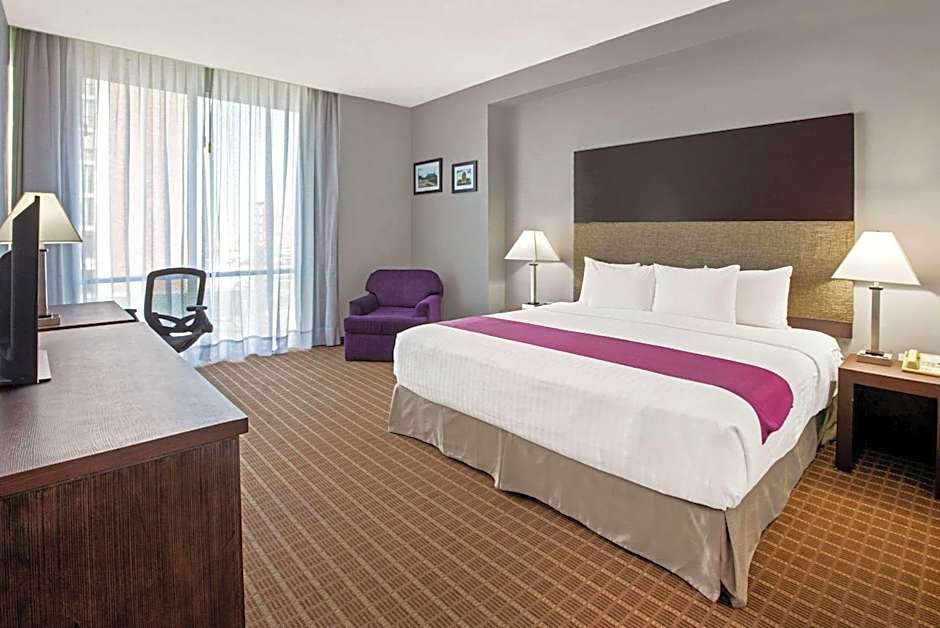 The hotel offers various room types including Standard, Suite, and Executive rooms, all non-smoking. The rooms accommodate 2 adults and 1 child, with bed options ranging from 1 King bed to 2 Queen beds. Some rooms feature city views and accessible options for guests with mobility needs.