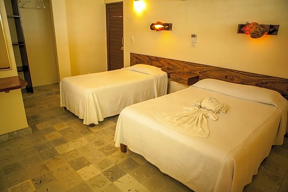 Hotel Laguna Bacalar offers a variety of room types including triples and doubles. The rooms have a size of 377 sqft and do not allow smoking. The occupancy of the rooms ranges from accommodating 2 adults and 2 children to 3 adults and 2 children. The bed sizes vary between twin beds and double beds.