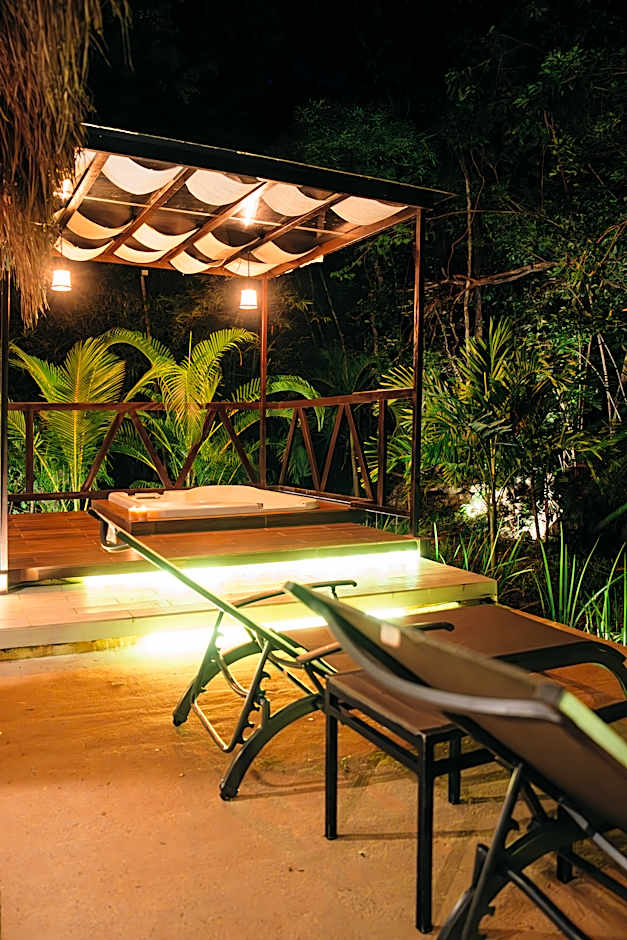 Located near the hotel pool, this bungalow offers the opportunity to have outdoor baths within lush vegetation.