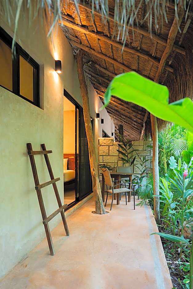 This villa is located a few steps away from the sacred path of the Maya (Sacbe). It has a roofed terrace with local grass and a private pool. The bathroom comes with a walk-in shower and has views of the jungle.