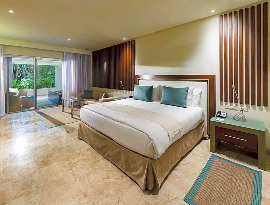 Comfort and luxury in a very spacious suite with king bed. It has a dining room, a living room with two sofas, one of which is a sofa bed and two bedrooms. In addition to two terraces with a whirlpool bathtub and views of the exotic resort gardens.