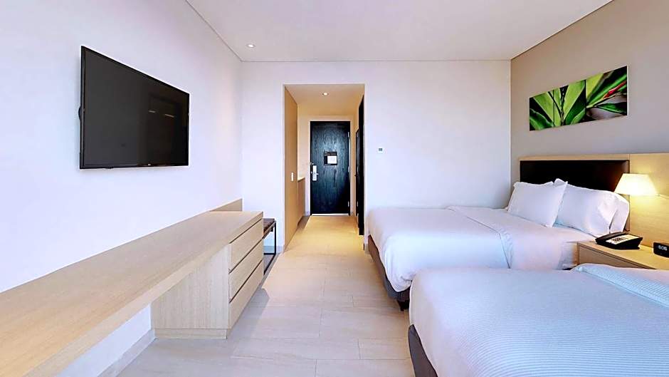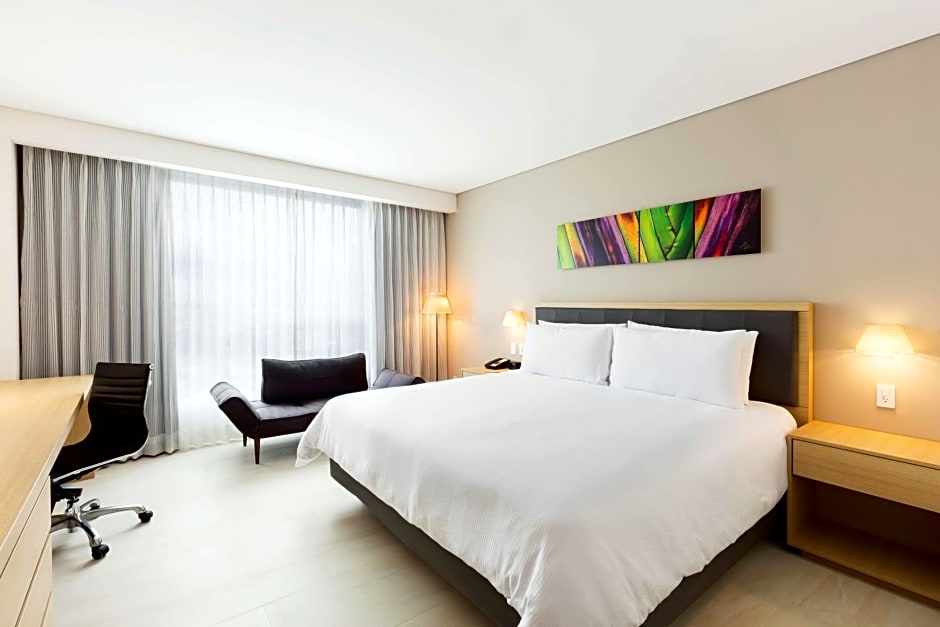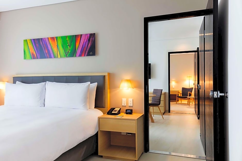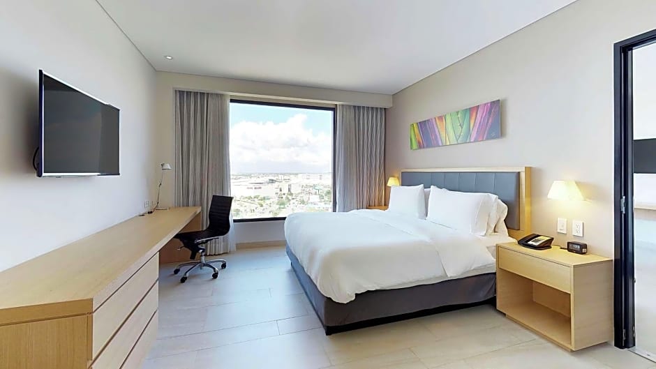 The Hilton Garden Inn Merida offers various types of rooms including King Rooms, Junior King Suites, One-Bedroom King Suites with Two Bathrooms, King Rooms with Mobility Accessible with a Roll-In Shower, and Double Rooms with Two Double Beds. Smoking is not allowed in any of the rooms. The King Rooms and King Suites have a bed size of 1 x King, while the Double Rooms have 2 x Double beds. The occupancy varies, accommodating 2 adults and 1 child in the King Rooms and Suites, and 4 adults and 3 children in the Double Rooms.