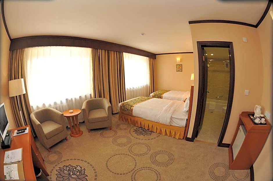 Room options span a wide spectrum, including Standard (1 Bed) at about 302 square feet, Deluxe at 345 square feet, and Deluxe with 2 Twin beds at 344 square feet. For larger stays, suites like the Suite Double Room and Suite Single Use offer up to 517 square feet of space. City View versions of several layouts, plus other configurations such as Economy and Superior Suite with City View, provide options for different budgets and group sizes.