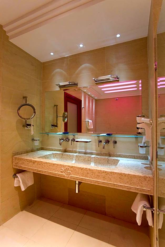 STANDARD DOUBLE ROOM POOL VIEW is 248 square feet and includes either a king-size bed 150-183 width or a double bed 131-150 width plus balcony, terrace, desk, satellite tv , hairdryer, safe, bathrobes, and slippers and is Wheelchair-accessible.