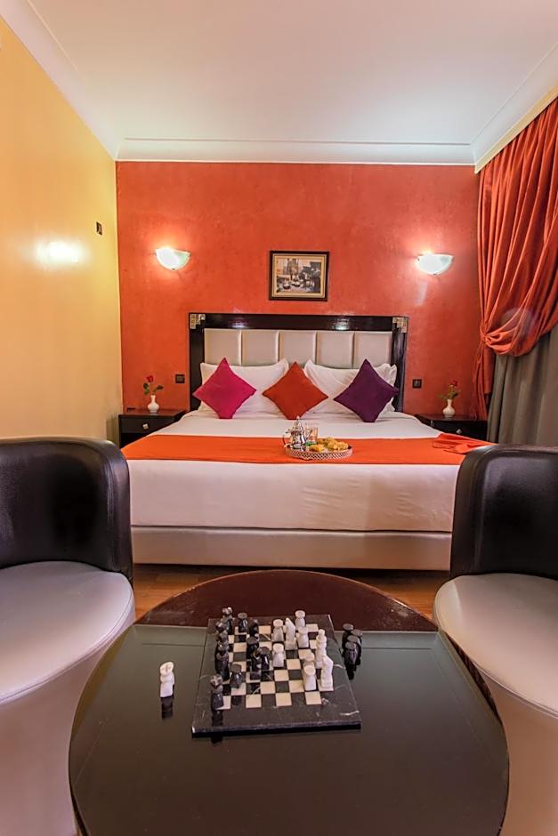 Hotel Meriem Marrakech blends Marrakech charm with four-star comfort for a playful base near the city’s rhythm. On-site dining comes in the form of an International Restaurant, while an outdoor pool offers sunny downtime. Free WiFi, air conditioning, a bar, and inviting terraces, sun decks, patios, and balconies frame garden or landmark views for easy breezy evenings. A 24-hour front desk adds a reassuring touch for late arrivals, early starts, or help with day trips to the medina and markets.