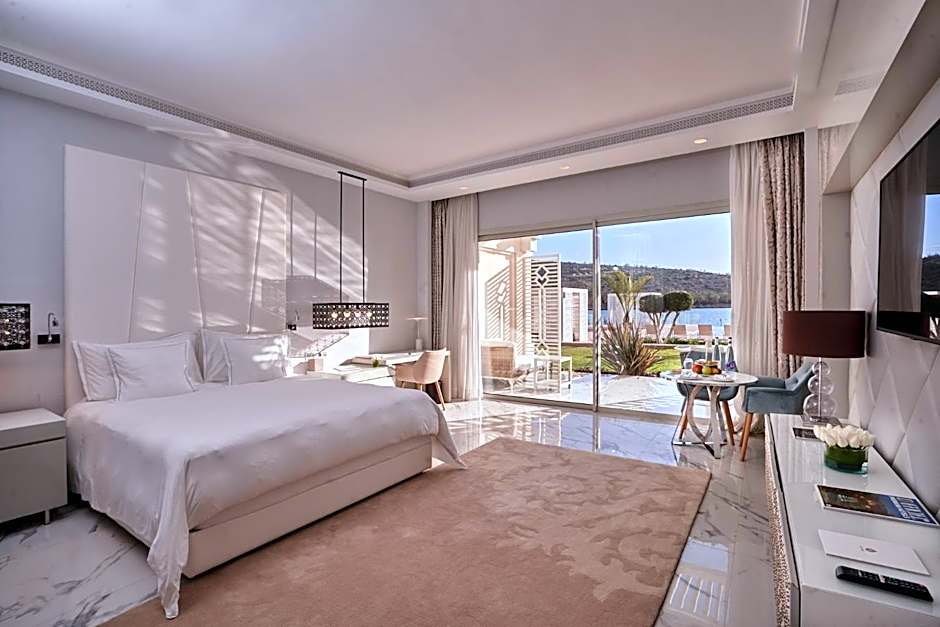 Escape to luxury at the 5-star Marchica Lagoon Resort, nestled on the breathtaking beachfront of Nador, Morocco. Enjoy the serene, private beach area and take advantage of the indoor and outdoor swimming pools with a separate kids' pool for family fun. The resort offers a range of free amenities including private parking, Wi-Fi, and even a kids' club.
