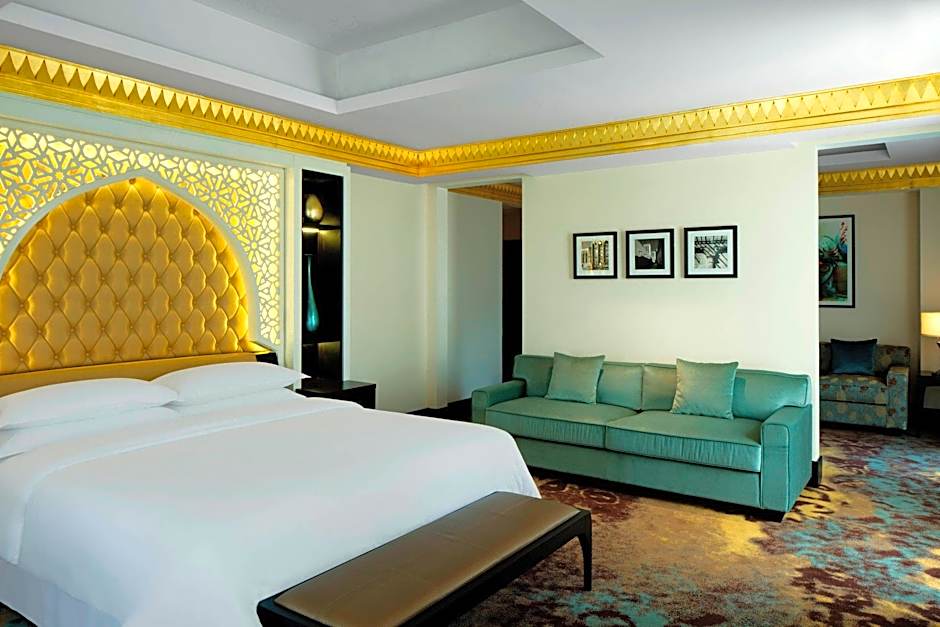 The hotel offers a variety of suites, including Superior, Suite with Balcony, Junior, and Deluxe Suites. The occupancy ranges from 2 adults and 1 child to 5 adults and 1 child. Smoking is allowed in the Suite with Balcony. Bed sizes vary from King size beds to Sofa Beds, and the room sizes range from 377 sqft to 667 sqft.