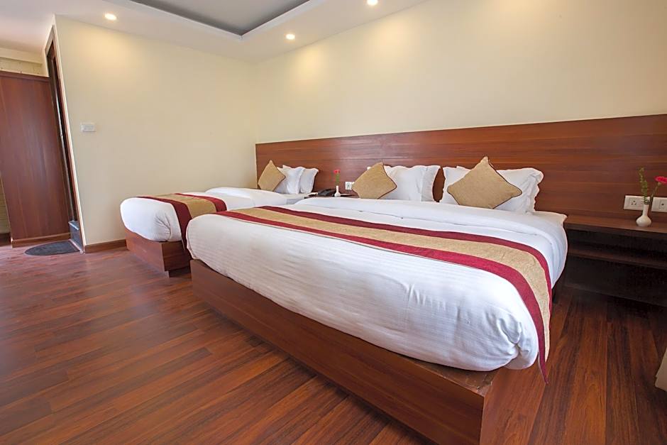 At the Aryatara Kathmandu Hotel, guests can choose from various types of rooms. These include the Deluxe Single Room (118 sqft) for single occupancy with a Twin bed, the Deluxe Double or Twin Room (140 sqft) that can accommodate two adults and one child with a King size bed and Twin beds, the Deluxe Triple Room (226 sqft) with three Twin beds, the Deluxe Family Room (183 sqft) that can accommodate three adults and two children with a Twin bed and King size bed, and the Deluxe Family Suite (355 sqft) that can accommodate four adults and one child with Twin beds and a King size bed. All rooms are non-smoking.