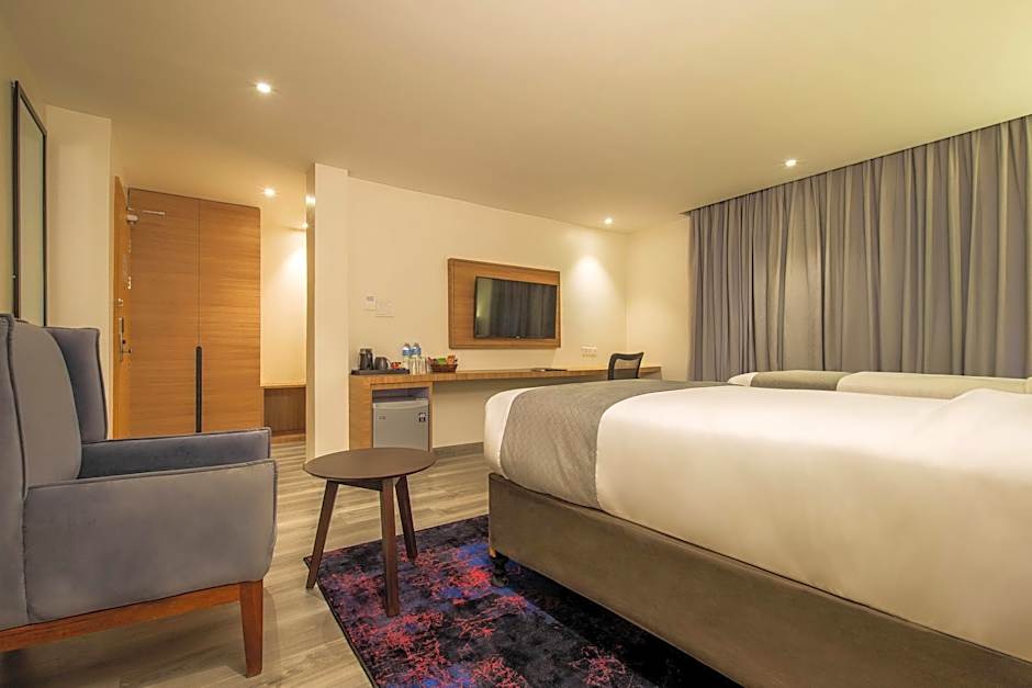 Featuring free toiletries and bathrobes, this twin/double room includes a private bathroom with a bath, a shower and a hairdryer. The spacious air-conditioned twin/double room features a flat-screen TV with cable channels, a mini-bar, a tea and coffee maker, a seating area as well as city views. The unit has 2 beds.