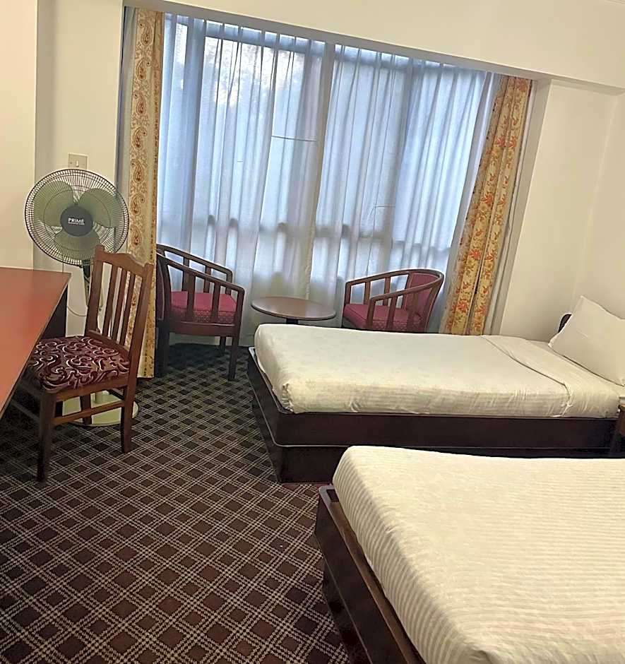 Fuji Hotel offers a variety of rooms including Standard Double or Twin Room with Fan, Superior Deluxe Double or Twin Room, Double or Twin Room, and Suite. All rooms do not allow smoking and can accommodate 2 adults. The room sizes range from 11 sqft to 22 sqft. The bed sizes vary from 2 Twin beds to 1 Queen size bed and 2 Double beds.