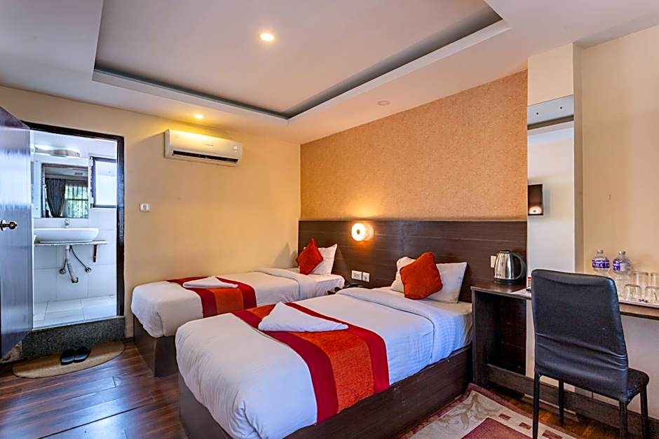 For those looking for a Standard Double or Twin Room, Hotel Sapana Garden Thamel has a perfect option. This room is slightly smaller at 129 square feet but still provides ample space for a relaxing stay. It can accommodate two adults and does not have any smoking areas. The room features two twin beds or a queen-size bed, allowing you to choose the configuration that suits your preferences.
