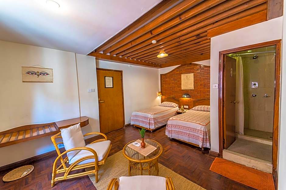 The Kantipur Temple House offers a Standard Twin Room with twin beds, accommodating 2 adults and 1 child. There is also a Deluxe Triple Room with three twin beds, accommodating 3 adults and 2 children. Additionally, they have a Deluxe Double or Twin Room with a combination of twin, queen, and king size beds, accommodating 2 adults and 1 child. Finally, they offer a Deluxe Suite with a queen size bed, accommodating 2 adults and 1 child. None of the rooms allow smoking.