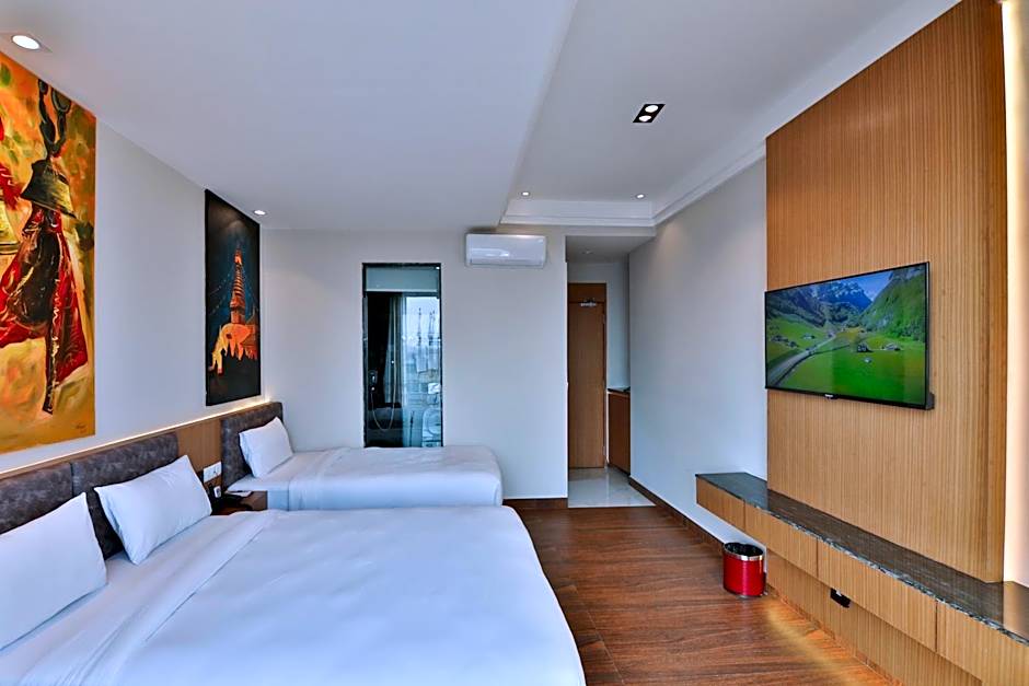 At Lakhey Hotel, guests can choose from rooms like the Deluxe Room with 2 Double beds that accommodates 2 adults and 1 child. Smoking is not allowed in any of the rooms. The Standard Double or Twin Room offers a Double bed and accommodates 2 adults with no smoking allowed. Rooms vary in size from 205 sqft to 248 sqft.