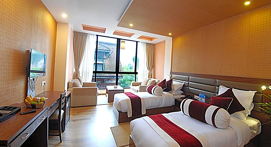 Not only will you be treated to a mouthwatering breakfast each morning, but you'll also enjoy the luxury of complimentary Wifi and cozy, air-conditioned rooms complete with free toiletries for your comfort. Dive into delectable delicacies at the on-site restaurant, or unwind with a drink at the bar after a day of exploring. With a dedicated tour desk, friendly 24-hour front desk staff, and an airport shuttle service available (for an extra charge), getting around Kathmandu has never been easier!