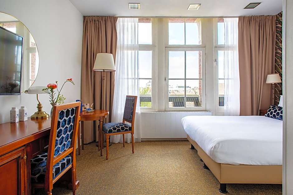The Comfort Double rooms have a double bed and a bathtub with shower. The rooms are either overlooking the lively Leidsestraat or facing the courtyard.
