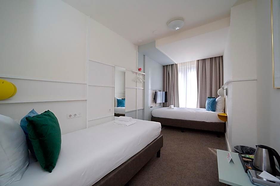 Hotel Atlas Vondelpark offers a variety of room types, including Double or Twin Rooms, Triple Rooms, and Single Rooms. The Double or Twin Rooms have a room size of 161 sqft and can accommodate 2 adults and 1 child. The Triple Rooms have a slightly larger room size of 194 sqft and can accommodate 3 adults and 1 child. The Single Rooms have the same room size as the Double or Twin Rooms and can accommodate 1 adult. Smoking is not allowed in any of the rooms. The Double or Twin Rooms have 1 double bed and 2 twin beds, while the Triple Rooms have 3 twin beds, and the Single Rooms have 1 twin bed.