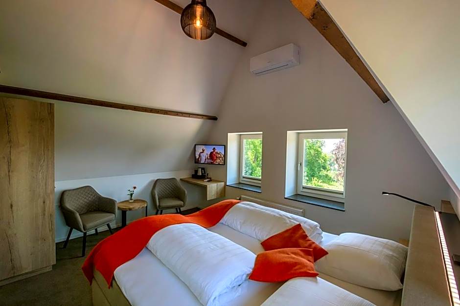 Unwind in the spacious Larger room at Hotel Bergrust, ideal for couples or small families. This comfortable accommodation can accommodate two adults and one child, providing a cozy retreat after a day of exploring Berg or playing a round of golf at the nearby golf course. Enjoy a peaceful night's sleep in this welcoming room, ensuring you wake up refreshed and ready to make the most of your time at Hotel Bergrust.