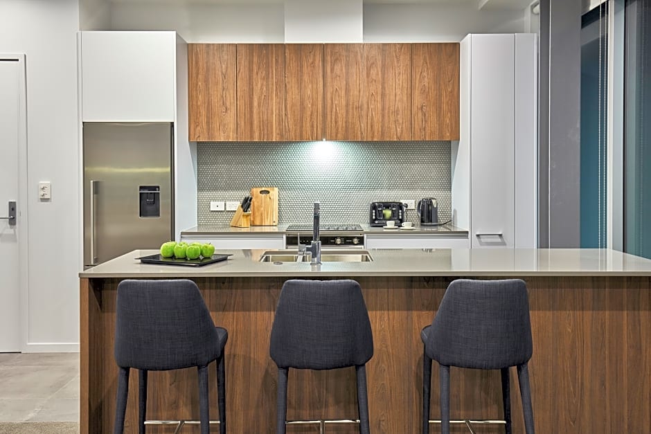 This One Bedroom Suite is spacious in size from 52 sqm and includes a balcony or Juliet door and expansive views from the floor to ceiling windows of Auckland City. The separate bedroom includes its own TV and there is a fully equipped kitchen, Samsung 55-inch Smart TV and complimentary unlimited high-speed WiFi. Complimentary welcome amenities include: - Nespresso coffee machine with coffee - A prestigious selection of Teas by Harney & Sons Bedding is either 1 king-size bed or 2 single beds. You can request your preferred bedding configuration in the Special Requests Box at the time of booking. Please note that the bedding configuration, the view and the balcony are not guaranteed and will be confirmed upon arrival, subject to availability.