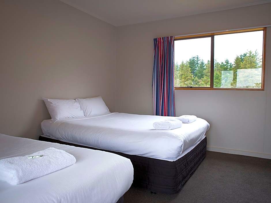 Accommodation at Glentanner Park Centre comes in a lively mix of Standard Cabins and bungalows, with sizes ranging from about 130 to 269 square feet. The Standard Cabin, 1 Twin offers 269 sq ft of space for up to five guests, with a queen-size bed, a twin bed, and a sofa bed. A smaller Standard Cabin at 172 sq ft fits two adults and one child, featuring three bunk beds for shared sleeping.