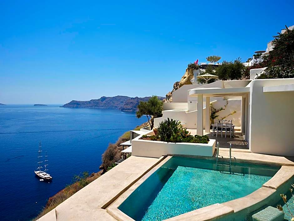 The White House features a private infinity pool with Caldera views, an outdoor hot tub and waterfall. You will find a double bedroom, an airy living area with sea views and a bathroom. The house is set on a 200 m2 terrace where you can enjoy a private dining.