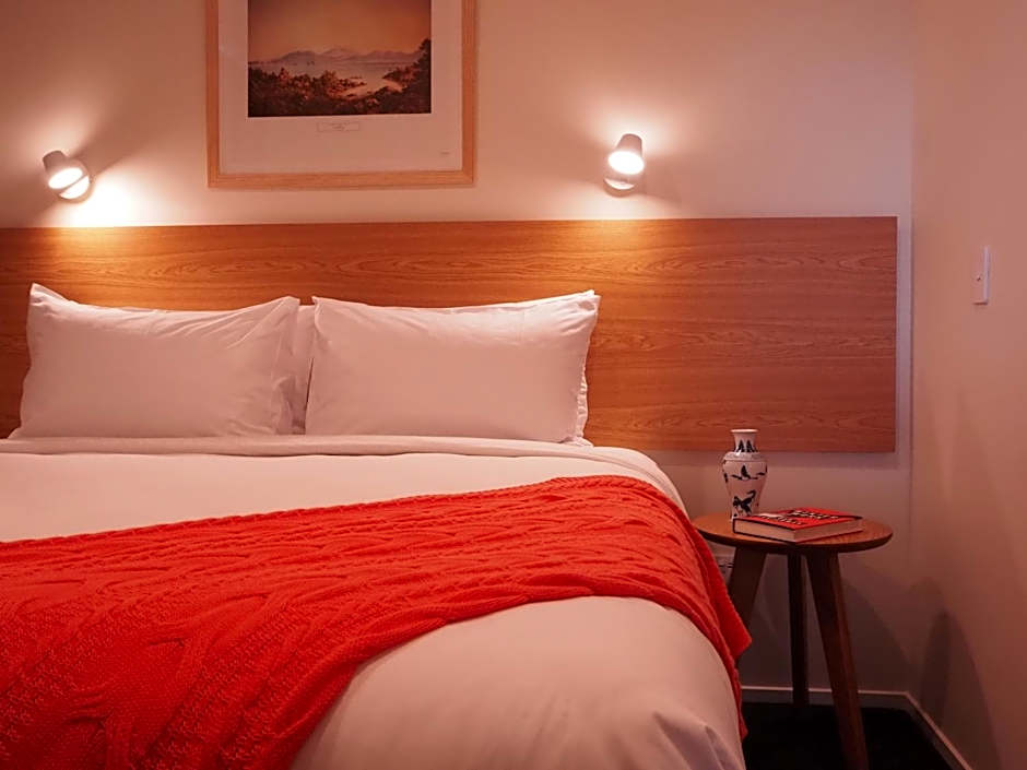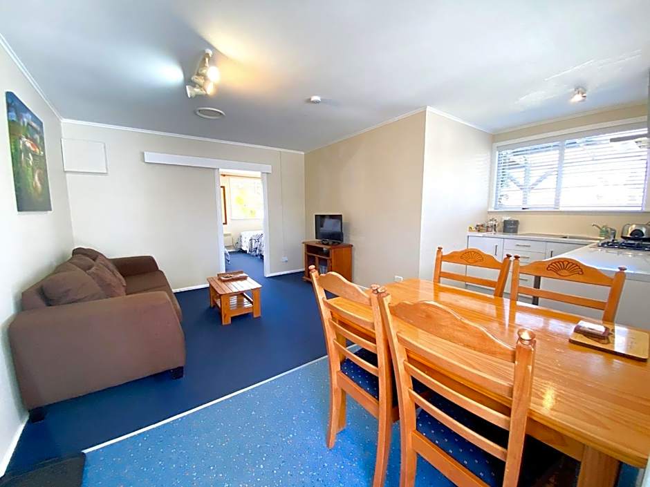 This renovated self-contained suite features a modern kitchen and spacious bedroom. The living room has a large flat-screen TV, comfortable sofa and dining table. This unit has a full kitchen, outdoor seating, easy access to the garden terrace and views of Mt Ruapehu.