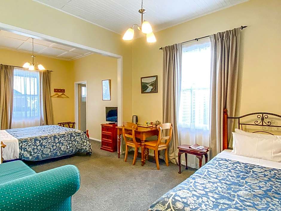 This suite features two separate bedrooms and a bathroom. This suite offers guests the benefit of having direct access to the garden terrace with the views of Mt Ngauruhoe and Mt Ruapehu. A flat-screen TV is provided in each bedroom.