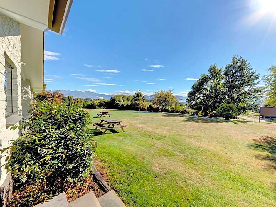 These modern one bedroom motels overlook our expansive front lawn to fantastic mountain views. Enjoy the spacious open plan kitchen, dining and lounge area that opens onto a private patio. With a separate bedroom with a queen and single bed, private bathroom, heat pump and chrome cast, this unit offers the comfort of home in a small package.