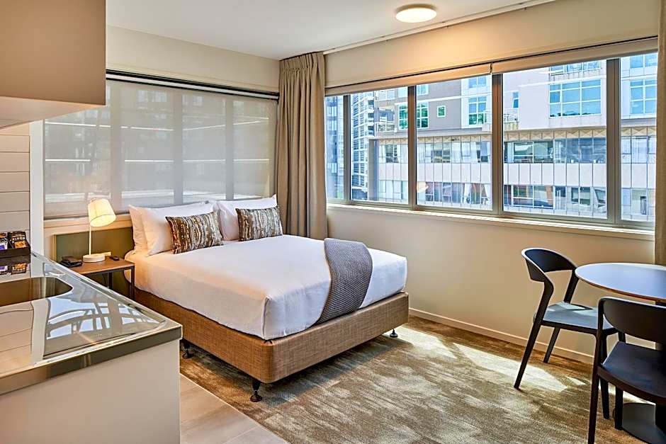 Starting at just $91, the Sojourn Apartment Hotel offers a range of fantastic amenities to make your stay enjoyable. Take a dip in the indoor swimming pool or relax in the sauna, both of which are available to guests free of charge. Stay connected with complimentary WiFi and enjoy the convenience of a 24-hour front desk. All rooms are soundproofed, ensuring a peaceful night's sleep, and feature air conditioning, a kitchen or kitchenette, and a private bathroom with free toiletries.
