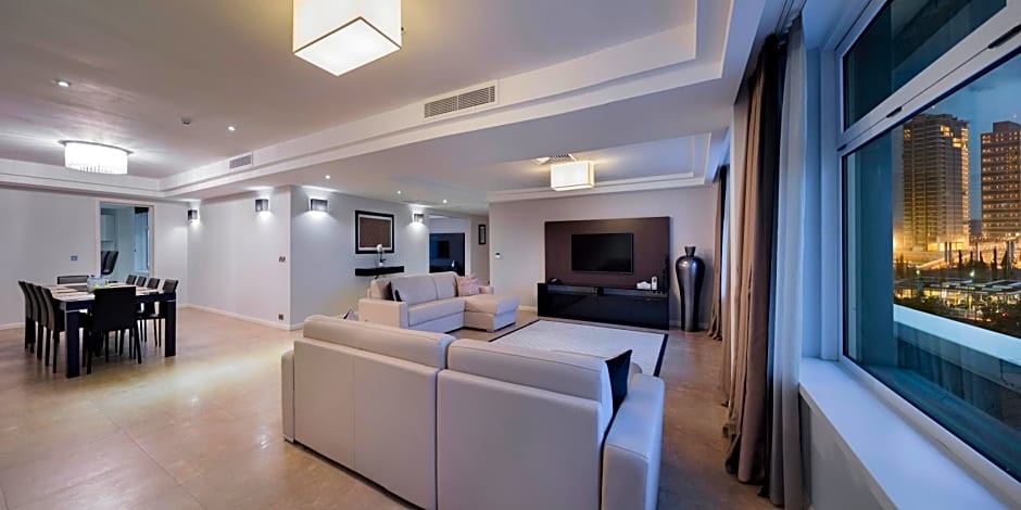 The hotel offers One-Bedroom and Three-Bedroom Apartments, as well as Studio Premier and Studio Deluxe rooms. Occupancy ranges from 2 adults and 0 children for the One-Bedroom Apartment to 6 adults and 3 children for the Three-Bedroom Apartment - Penthouse. All rooms are non-smoking and offer King size beds, with the largest room being 2433 sqft in size.