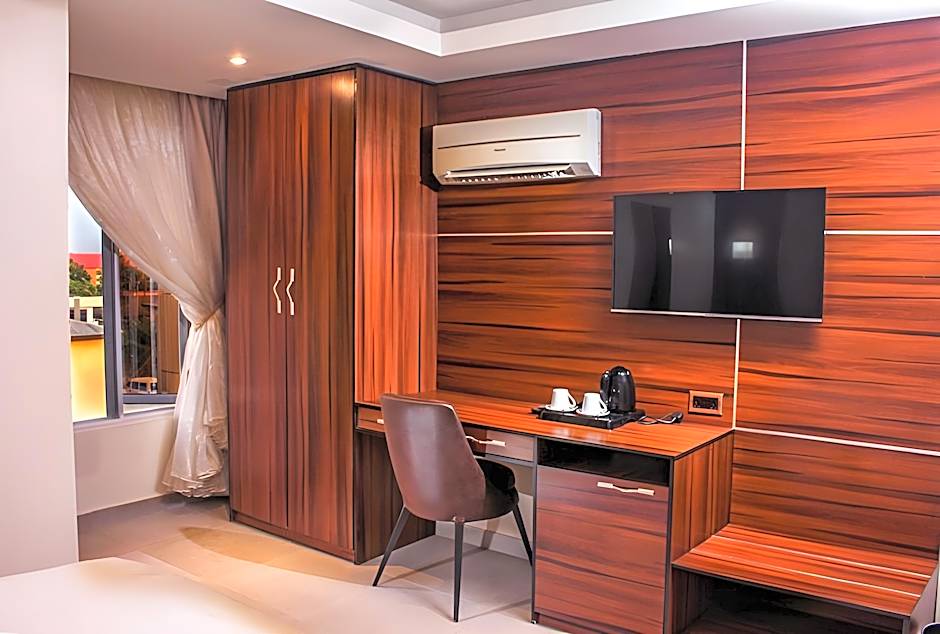 Welcome to Joshesther Olive Hotel, located just 1,5mi from the heart of Ikeja, Nigeria. This vibrant and pet-friendly hotel offers an outdoor swimming pool, private parking, and complimentary wifi. The 24-hour front desk, non-smoking rooms, and soundproof accommodations provide a peaceful and convenient experience for all guests. Start your day with a delicious breakfast before exploring the city or enjoying the comfort of the hotel's amenities, including a bar, elevator, and room service. With 14 reviews, the Joshesther Olive Hotel is a great choice for travelers seeking a memorable stay in Ikeja.